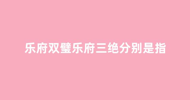 乐府双璧乐府三绝分别是指